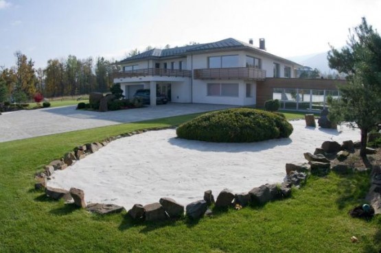Architektem navržená zahrada o ploše 6000 m2, vzrostlé dřeviny, závlahový systém pro travní porost.