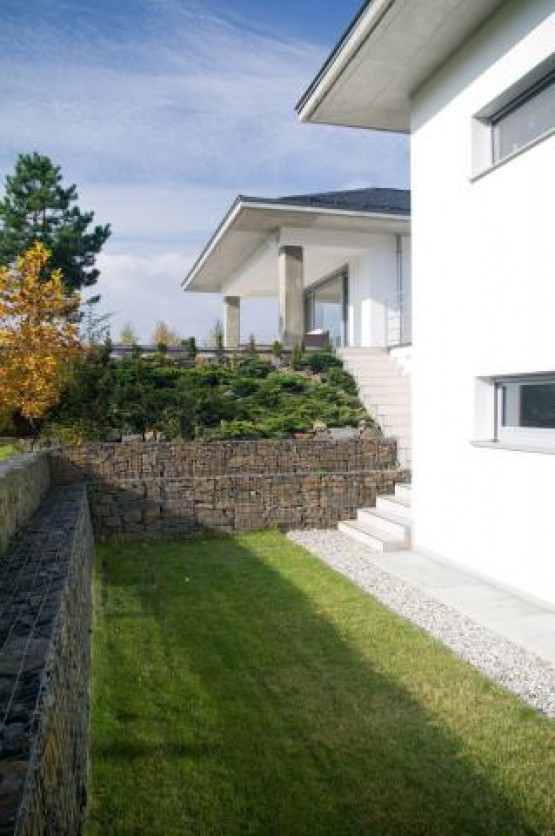 Vila se nachází v uzavřeném rezidenčním areálu s vjezdovou branou a je oddělena od příjezdové komunikace žulovým nádvořím s dostatečnou kapacitou pro parkující vozidla, případně k dalšímu využití.