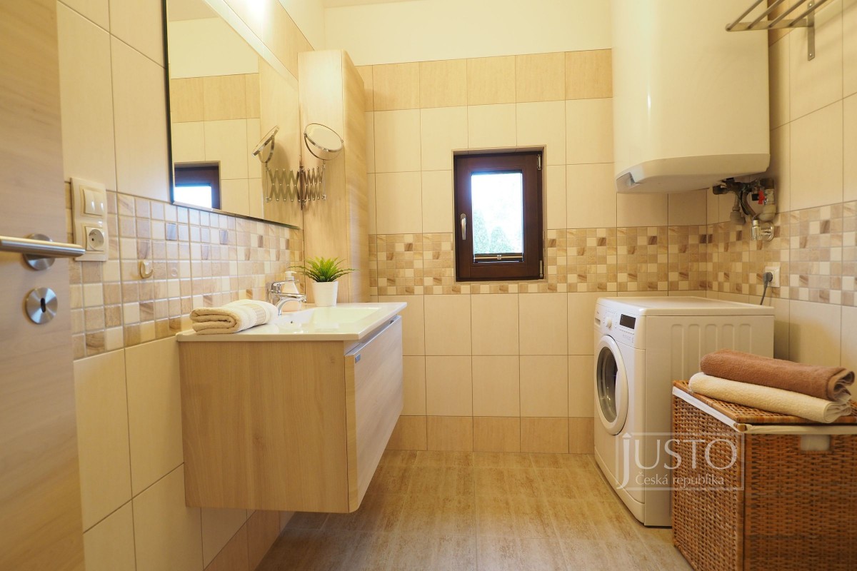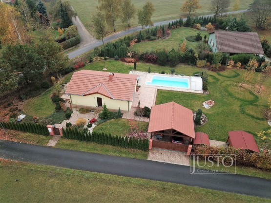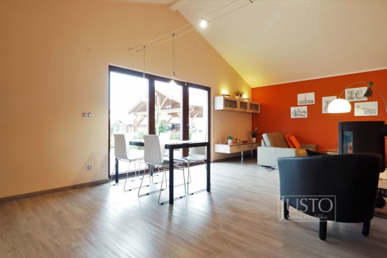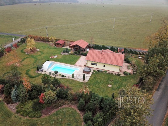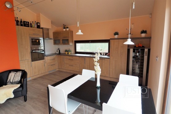 V zastoupení majitele nabízíme exkluzivně k prodeji nový, samostatně stojící, nízkoenergetický dům v osadě Varta nedaleko obce Jickovice. Nemovitost je v klidné a příjemné lokalitě, obklopena přírodou a vzdálena pět set ...metrů od vyhlídky, ze které je výhled na hrad Zvíkov a na přehradní nádrž Orlík. Kolaudace proběhla v roce 2013, dispoziční řešení je praktické, bezbariérové 3+kk s technickou místností. Při vstupu do domu je zádveří, které navazuje na chodbu, odkud se vstupuje samostatně do všech místností v domě. Světlý obývací pokoj je propojený s kuchyní a jídelním prostorem, architekt navrhl velké prosklené dveře s přímým vstupem přes terasu do zahrady, které Vám zajistí komfort užívání exteriéru a interiéru. Dále jsou v domě dva pokoje, ze kterých je přímý vstup na zadní terasu. Koupelna je se sprchovým koutem a místem na pračku, je přímo odvětrána a osvětlena oknem, toaleta je samostatná. Nezbytný úložný prostor vám poskytuje technická místnost. Dům je vytápěn podlahovým elektrickým topením a krbovými kamny v obývacím pokoji. Podlahová krytina v pokojích je vinylová v kombinaci s dlažbou na namáhaných místech domu. Okna jsou dřevěná, osazena v obývacím pokoji venkovními žaluziemi na elektrický pohon, v pokojích jsou vnitřní roletky. Zařízení je ve vyšším standardu. Zásobení vody je z vlastního vrtu a odpad je řešen do ČOV (osobní vlastnictví). Dům je v moc hezké zahradě v parkové úpravě, kde je vířivka a krytý bazén se slanou vodou s přelivem a vyhřívaný tepelným čerpadlem. Na pozemku kryté parkovací stání pro dvě auta. Zahradní domky nabízí úložné prostory. Pozemek je rovný, snadno udržovatelný. Dům se prodává po dohodě i se zařízením a zahradním vybavením. Nemovitosti jsou bez jakýchkoliv právních vad či omezení. Všechny potřebné dokumenty, testy, půdorysy atd. jsou k nahlédnutí v naší kanceláři nebo u majitele domu. Celý objekt zabezpečen EZS.