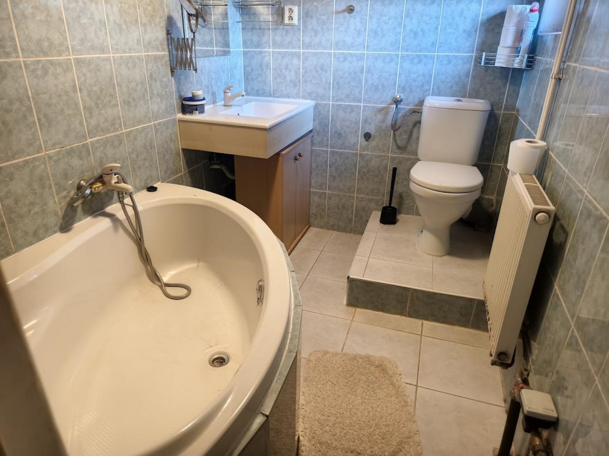Z již v popisu navštívené chodby se vstupuje na nádvoří, taktéž do koupelny s rohovou vanou a sociální zařízení WC, v zákoutí chodby kotel na tuhá paliva, který je hlavním způsobem vytápění domu a při faktu, že Zouvalka nedisponuje plynovým řádem, je tento způsob temperance, spolu s možností elektrického kotle, nutným způsobem vytápění.