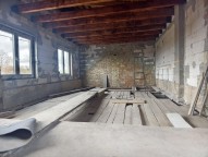 Z chodby vede schodiště do nadzemního podlaží, kde bylo plánováno další bydlení, mnohé je tam pro toto již připraveno a má potenciál jedné velké, anebo dvou menších místností, s okny na silnici.