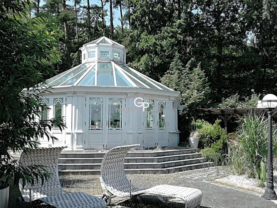 Zahrada o rozloze 3. 868 m2 navazuje na další pozemky včetně lesa a orné půdy. Celková výměra pozemků činí 31. 005 m2. V exteriéru se nachází belgický altán s barem (55 m2), okrasné jezírko využitelné i jako venkovní bazén (objem 300 m3), disco osvětlení, zabezpečovací systém a soukromý vysílač. K dispozici je také kryté parkovací stání pro tři vozy a vytápěná voliéra pro okrasné ptactvo.
