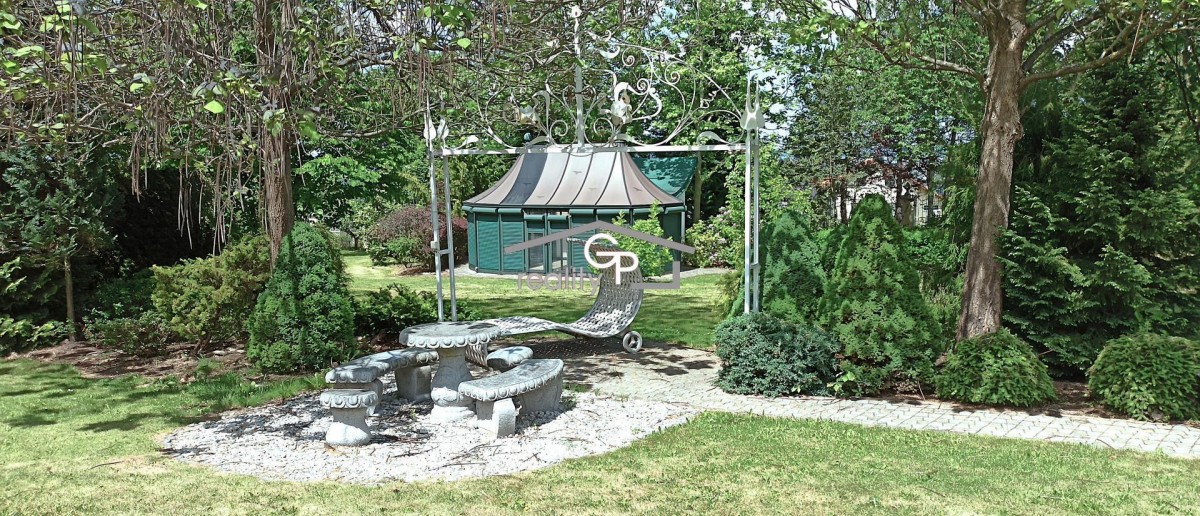 Rozsáhlý pozemek zahrnuje udržovanou zahradu, navazující lesní a zemědělské plochy, belgický altán s barem, jezírko s možností koupání, kryté parkování pro tři vozy a vytápěnou voliéru. Nemovitost je vybavena moderním zabezpečovacím systémem.