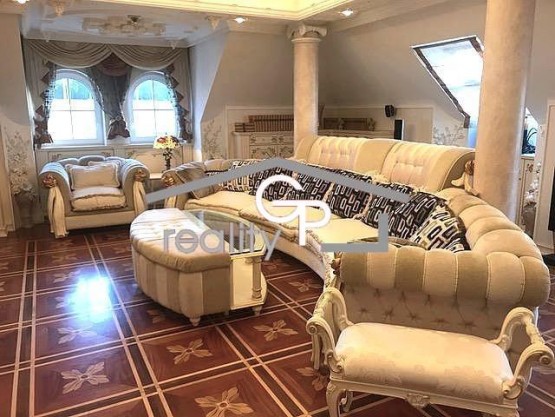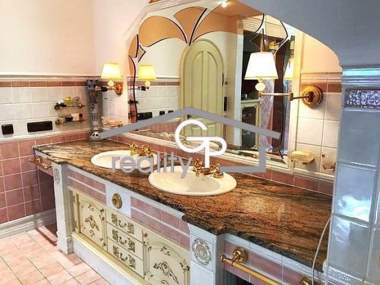 Přízemí dominuje velkorysá vstupní hala s ručně vyřezávaným schodištěm, která propojuje obývací pokoj s krbem, jídelnu a luxusní kuchyni se spotřebiči Miele a Gaggenau. Dále se zde nachází ložnice s vlastní koupelnou a pracovna. Součástí rezidence je wellness zóna s vnitřním bazénem, vířivkou a přímým vstupem na terasu.
