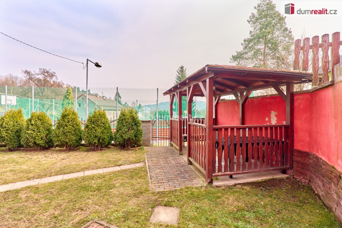 Na zahradě u domu o velikosti 303 m² se nachází dřevěný altánek pro chvíle odpočinku. Součástí nemovitosti je garáž pro jedno menší osobní auto, ale v současnosti se využívá jako sklad dřeva a praktická kůlna na zahradní techniku a za domem se nachází kotec pro psa. Parkování je možné pohodlně přímo před domem.