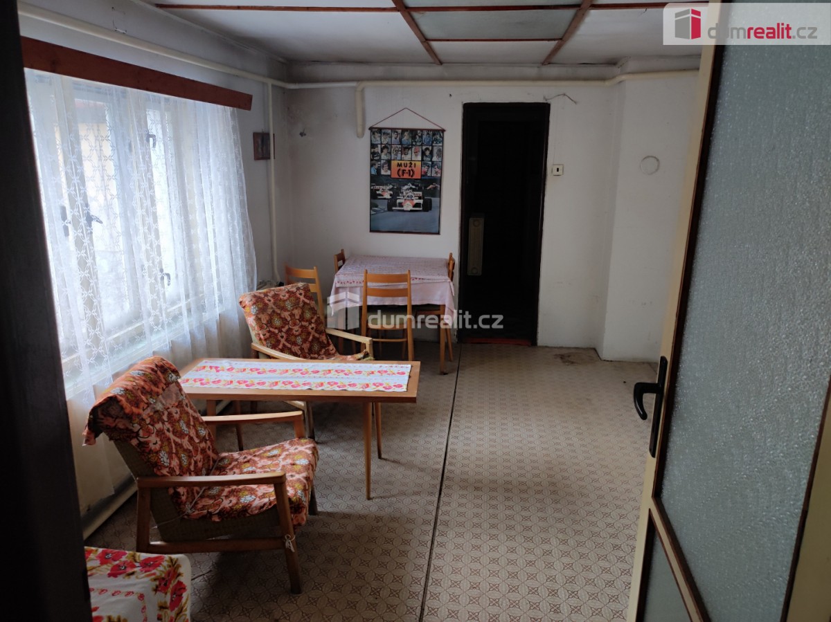 Za domem je malá rovinatá zahrada, která je od sousedních pozemků oddělena cihlovou zdí. Dispozice domu je momentálně 2+1, ale díky vedlejším stavbám lze dispozici změnit.
