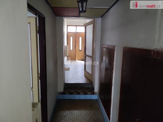 Dům je v řadové zástavbě při hlavní komunikaci se dvěma parkovacími místy před domem. Je napojen na veřejný vodov...odní řád, plynovod, elektřinu a kanalizace je zavedena do domu, jen není dopojena, k dispozici je tedy i žumpa. Domek je starý zhruba 100 let a je tedy před kompletní celkovou rekonstrukcí.