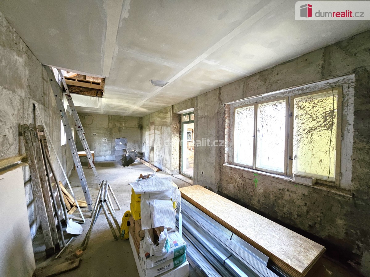 cena včetně provize a právního servisu. Dumrealit. cz Vám nabízí prodej rodinného domu v obci Úpohlavy, na kterém je započatá rekonstrukce. V přízemí je veranda a vstup do místnosti (39 m²), kde byla v plánu kuchyň s obýv...acím pokojem. Dále je zde místnost pro koupelnu (14, 40 m²). Přes obývací pokoj by měli vést schody do podkroví, které lze případně přepažit a udělat zde 2 samostatné místnosti se vstupem přes francouzské okno na prostornou terasu, která by byla nad koupelnou. Dispozičně lze tedy v budoucnu řešit dům jako 3+kk, nebo 3+1 s terasou. V přízemí jsou betonové podlahy. Lze zde vybudovat případně podlahové topení. V podkroví jsou podlahy z OSB desek. Dům má novou střechu a plastová okna. V obývacím pokoji je zatím původní dřevěné. Lze zde případně umístit francouzské okno se vstupem na pozemek. Odpady jsou svedené do septiku s přepadem do kanalizace. K dispozici obecní vodovod. Plynová přípojka je na hranici pozemku. V případě zájmu o dokončení rekonstrukce domu dle přání zájemce, lze předat kontakt na stavební firmu. Pro více informací a domluvení prohlídky, kontaktujte makléřku nemovitosti. Ev. číslo: 652724. Energetický štítek: G
