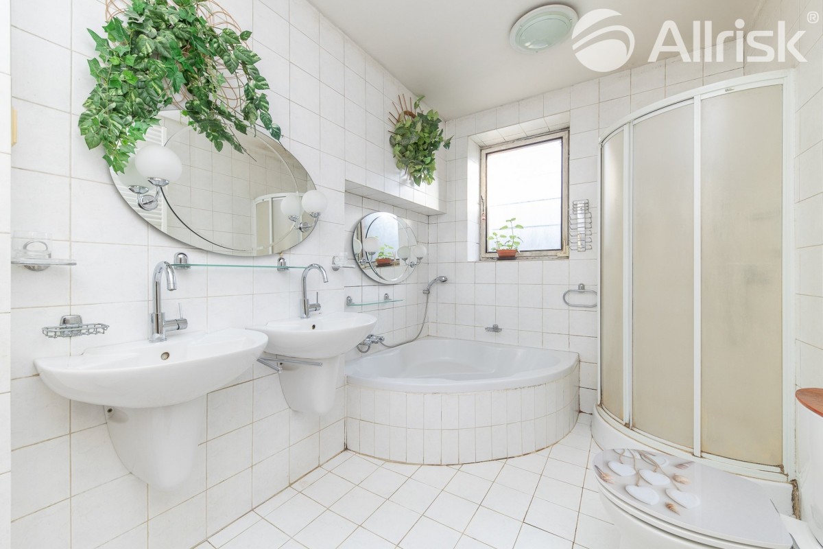 -  Koupelna se sprchovým koutem,  vanou,  bidetem a toaletou + samostatné sociální zařízení WC