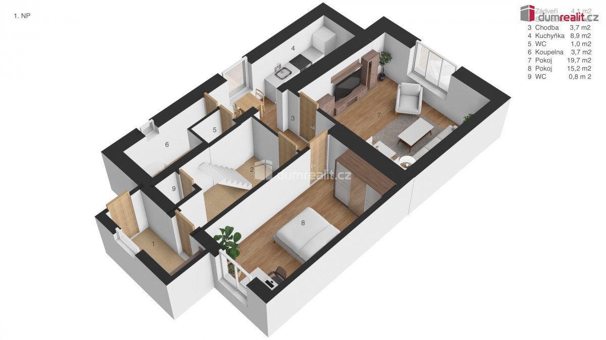 SNÍŽENÍ CENY. Dumrealit. cz Vám nabízí prodej ŘRD (rodinný dům) rohového 4+2 KK s garáží, se sklepem s obytnou místností např. pracovna. Dům je o dvou BJ 2 krát 2+KK s vlastní zahradou 145m² a garáží, Hlavenecká, PHA 9 ... Prosek. Jedná se o klidnou čtvrť s rodinnými domy v těsné blízkosti MŠ, ZŠ, SŠ a kompletní občanské vybavenosti včetně restaurace, obchodů a služeb, OBI, BILLA. 2 krát zastávka MHD v dosahu 200m, zastávka metra C Prosek cca 700m. Velmi dobrá dopravní dostupnost na Pražský okruh, nájezd na ul. Kbelská je 500m. Dům je zateplený, napojený na obecní vodovod a kanalizaci, elektřinu, plynovod. Je zřízena pevná tel. linka. Vytápění domu zajišťuje plynový kotel s rozvody do radiátorů. Bytové jednotky jsou samostatné, každá v jednom patře domu, vstup je ze společné chodby a schodiště. Dům je podsklepený, zachovalý, přízemí je v dobrém stavu, druhé patro je k rekonstrukci. Okna jsou plastová. Zastavěná plocha domu je 87 m², (užitná plocha PP 46, 1 m², 1. NP (první nadzemní patro) je 63, 5 m², 2. NP (druhé nadzemní patro) je 55 m², celkem: 164, 6 m²), zahrada o výměře 145 m² má 2 krát přívod pro vodu, garáž má 17 m² a napojení na elektřinu, vjezd je z ul. Rudečská.