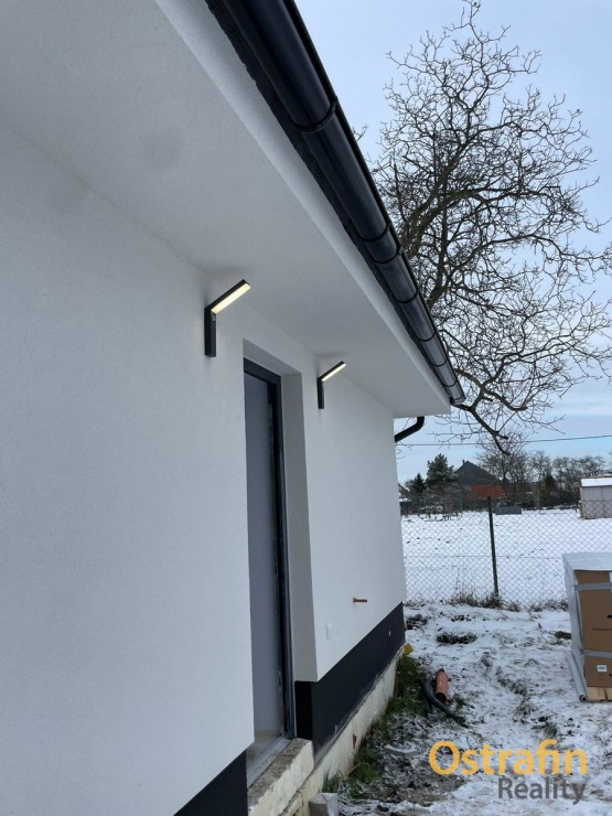 Je zde valbová střecha v barvě antracit, plastová okna (trojskla, barva antracit), parapety, zateplení domu, fasáda v barvě bílá, hydroizolace, elektroinstalace hlavních rozvodů, přípojka vody, přípojka elektra, kanalizace, vsak, dešťová kanalizace s drenážemi a retenční nádrž. Dále je také hotová tepelná izolace podlah, topení, anhydrit, tepelná izolace stropu, sádrokartóny, omítky, vodoinstalace.