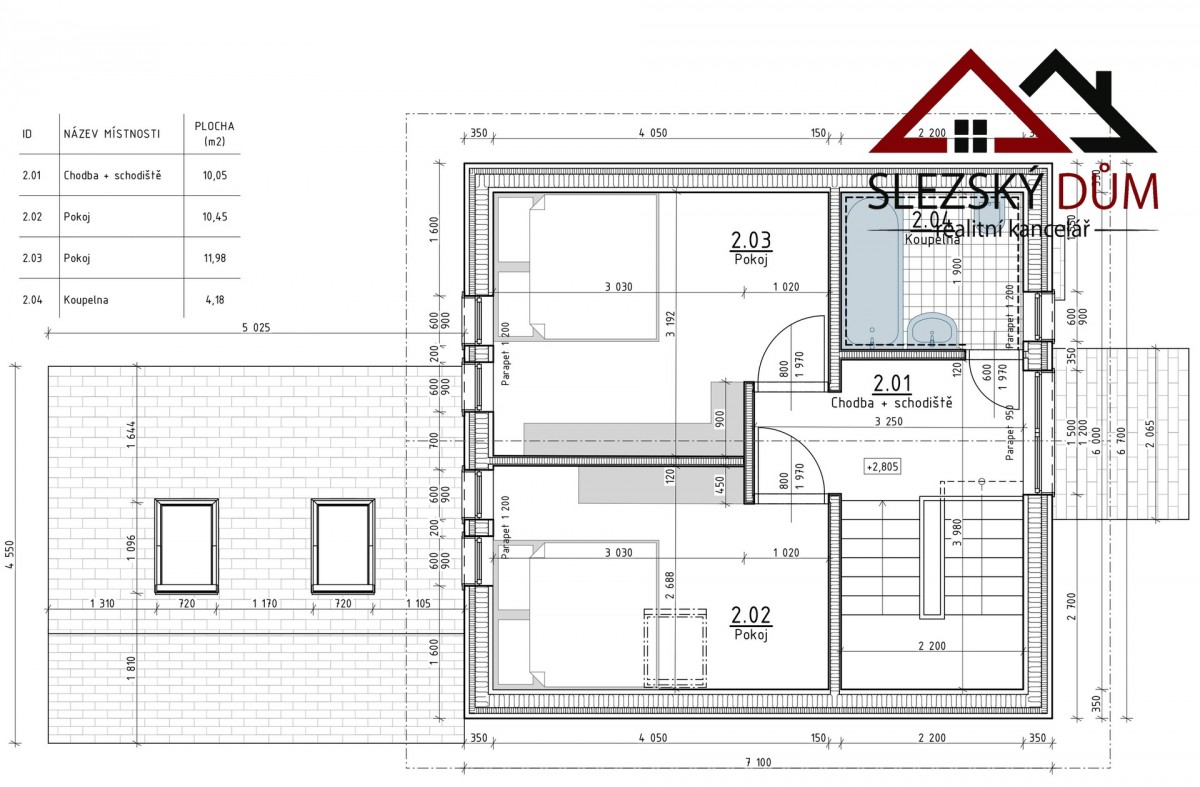 • Patro: dva pokoje, koupelna s sociální zařízení WC a chodba