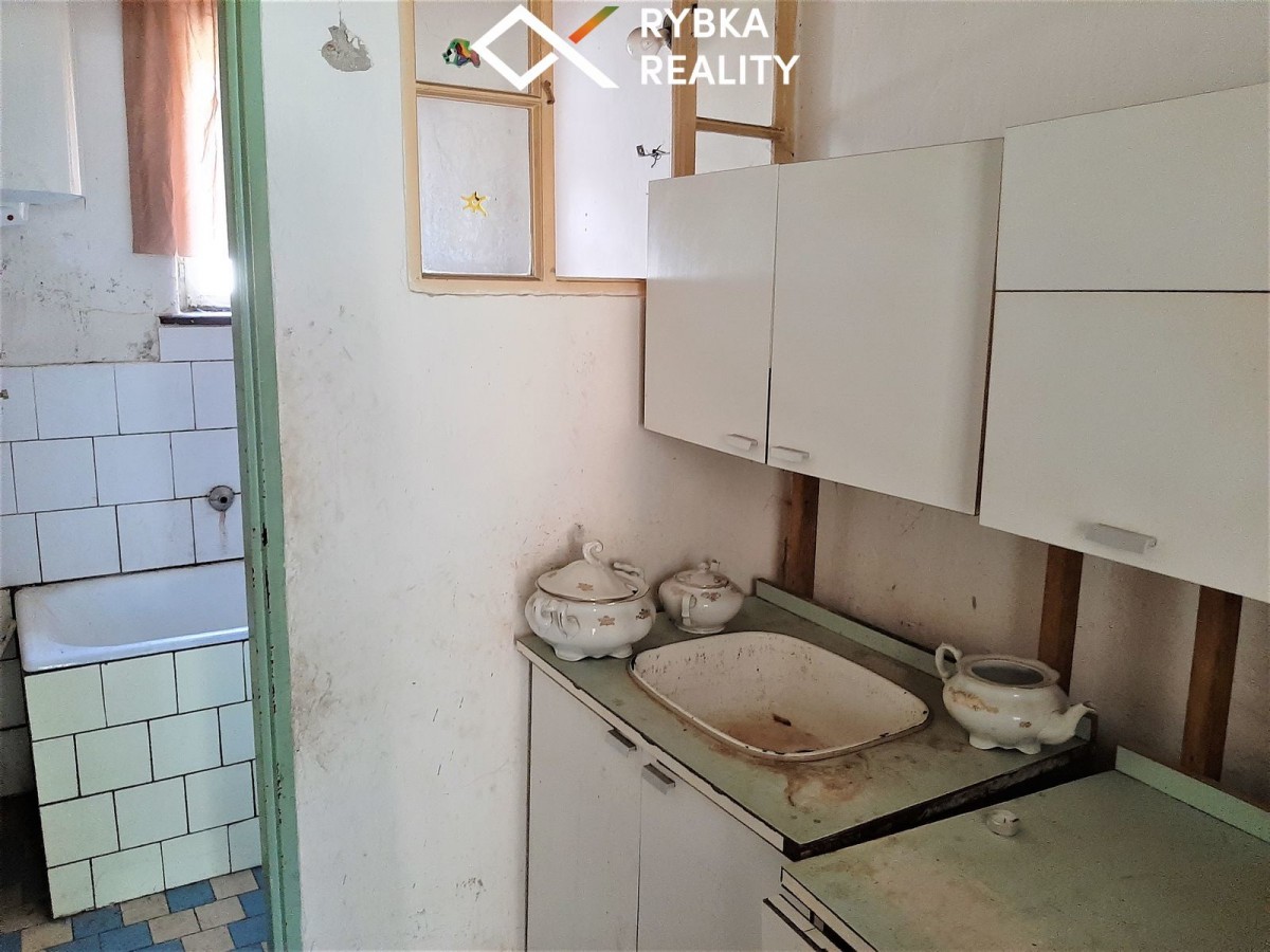 Se souhlasem majitele nabízíme k prodeji samostatný rodinný dům s číslem popisným, s přisazenou společnou stěnou v rámci dvoj domku. Součástí prodeje je hospodářská budova a zahrada o výměře 396 m2. Objekt je ur...čen k demolici nebo ke kompletní rekonstrukci a není ve stavu pro okamžité užívání. Dispozice místností v I. NP: zádveří, obývací pokoj, ložnice, kuchyň, koupelna a sociální zařízení WC, ve II. NP: pokoj a větší podkrovní prostor. Inženýrské sítě: obecní vodovod, elektro přípojku nutno vyřídit u provozovatele sítí, odpad do žumpy. Přístup k nemovitosti pouze pro pěší. Zájemcům o nemovitost jsme do ceny promítli předpokládaný finanční příspěvek na snížení energetické náročnosti budovy z dotačního programu Nová zelená úsporám. Více info u makléře.