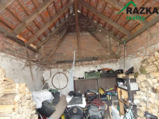 Vedle rodinného domu stojí zděný sklad, který není zakreslený v katastrální mapě. Budova je nepodsklepená o velikosti 20 m2, podlaha je hliněná, stavebně technický stav velice špatný. Zahrada je s trvalými porosty, neudržovaná, částečně podmáčená.