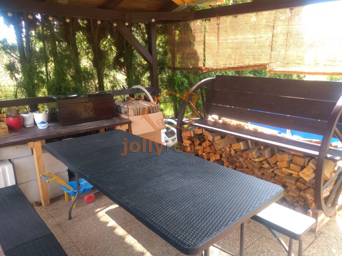 Zahrada je okrasná, je zde posezení, zastřešená pergola, udírna, dětský koutek, chatka na nářadí. Na zahradě zadní části zahrady se nachází i kopaná studna ze které je rozvedena voda po celé zahradě. Napouští se z ní i bazén.