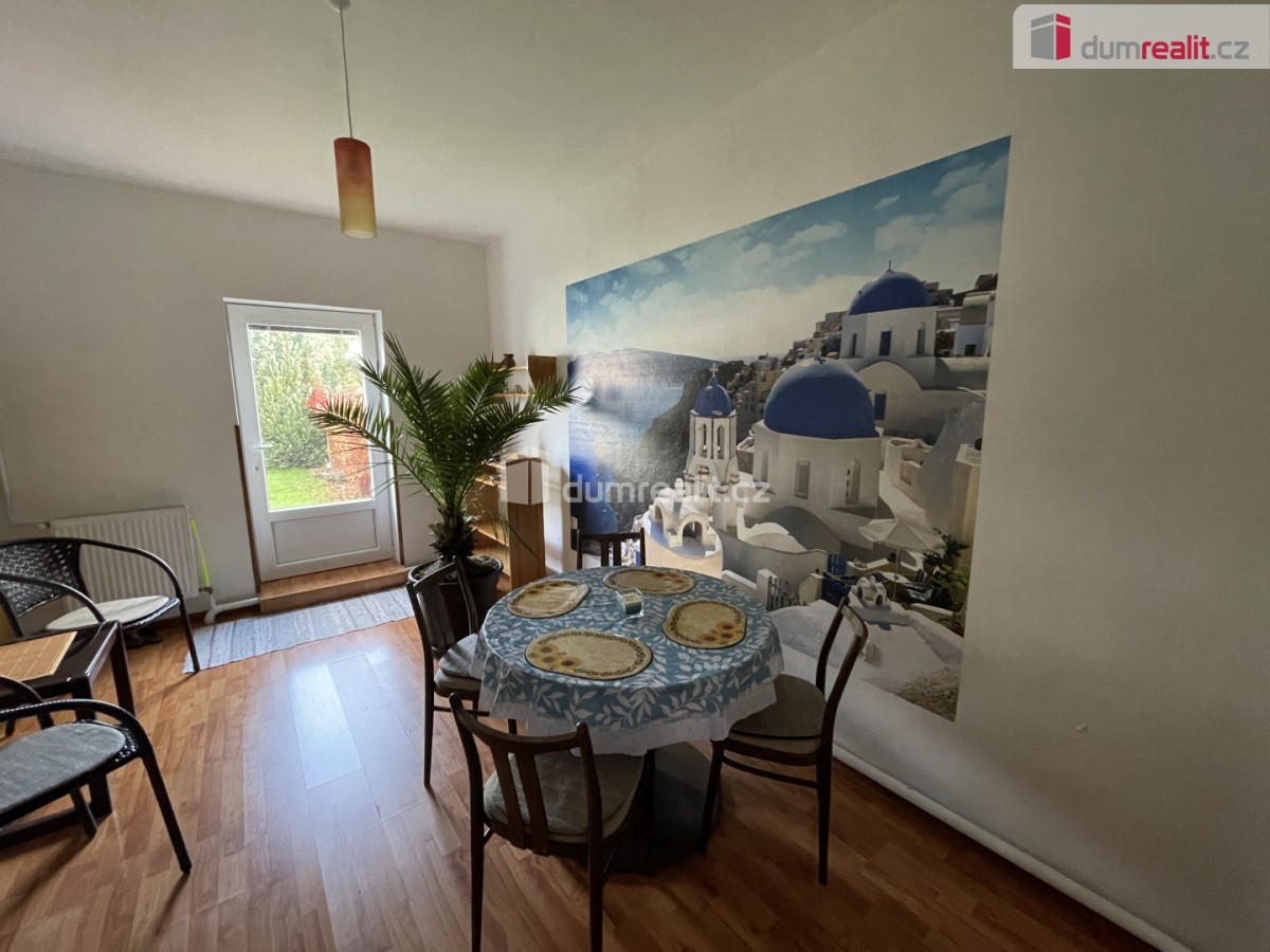 cena je včetně DPH a veškerého právního servisu. Dumrealit. cz Vám nabízí exkluzivní prodej samostatné části dvojdomku v Čimelicích nedaleko Příbrami. Tato lokalita je velmi lukrativní vzhledem k již dostavěné dálnici D4. ...Dům a jeho okolí je majiteli pečlivě udržován. Dům byl postaven kolem roku 1940, cca před třiceti lety proběhla v domě potřebná rekonstrukce : nové podlahy, nové rozvody elektřiny a vody. Před pěti lety došlo k instalaci plovoucí podlahy, výměně a zateplení střechy. V loňském roce proběhla v některých pokojích výměna lina. Dům je napojený na společnou studnu, odpadové vody jsou svedeny do septiku. Vytápění v domě je řešeno ústředním topením napojeným na kotel na tuhá paliva ( starý kotel - možno u výměny využít dotaci ) nebo krbem v obývacím pokoji. Komín prochází pravidelnou revizí. Dispoziční řešení domu : 1. NP (první nadzemní patro) - zádveří 1, 9 krát 2, 4m, kuchyně 3, 6 krát 2, 3m - kuchyňská linka, plynový sporák připojený na plyn. bombu, jídelní stůl, koupelna 2, 4 krát 1, 5m - vana, umyvadlo, skřínka, samostatné sociální zařízení WC, vodárna. V 1. NP (první nadzemní patro) je dále společenská místnost s východem na zahradu 5, 2 krát 3m a obývací pokoj 4, 2 krát 4, 7 , kde jsou dominantou krbová kamna. Po dřevěném schodišti vstupujeme do 2. NP (druhé nadzemní patro) a chodbou pokračujeme do dalších místností: ložnice 5, 66 krát 4, 3m, ze které je vstup na velkou terasu a pokoj pro hosty 1, 9 krát 3, 6m. Za domem je udržovaná zahrada s nadzemním bazénem. Z této zahrady je vstup do garáže 7, 1 krát 3, 6m, dřevníku, skladovacích prostor na zahradní vybavení a technické místnosti, kde se nachází bojler 200l a starý kotel u kterého je nutná výměna. V okolí domu vede plyn ( připravena přípojka ), kanalizace a vodovod , na který je možné podat žádost o připojení a následně se tedy připojit. Čimelice jsou obec v severní části okresu Písek, v Jihočeském kraji, žije zde přibližně 1 000 obyvatel. Zřejmě největší stavbou v Čimelicích je barokní schwarzenberský zámek z roku 1720. Obec se nachází na dopravní tepně – silnici D4 ze Strakonic a Písku do Prahy. Má vlastní nádraží (na trati Zdice–Protivín) a je velice dobrá dostupnost do Prahy i Českých Budějovic. Více informací v RK. Cena je s provizí RK. Provize RK zahrnuje veškerý právní servis včetně zajištění advokátní úschovy kupní ceny a podání návrhu na vklad do KN. Hypotéční specialista v RK. Ev. číslo: 648990. Energetický štítek: G