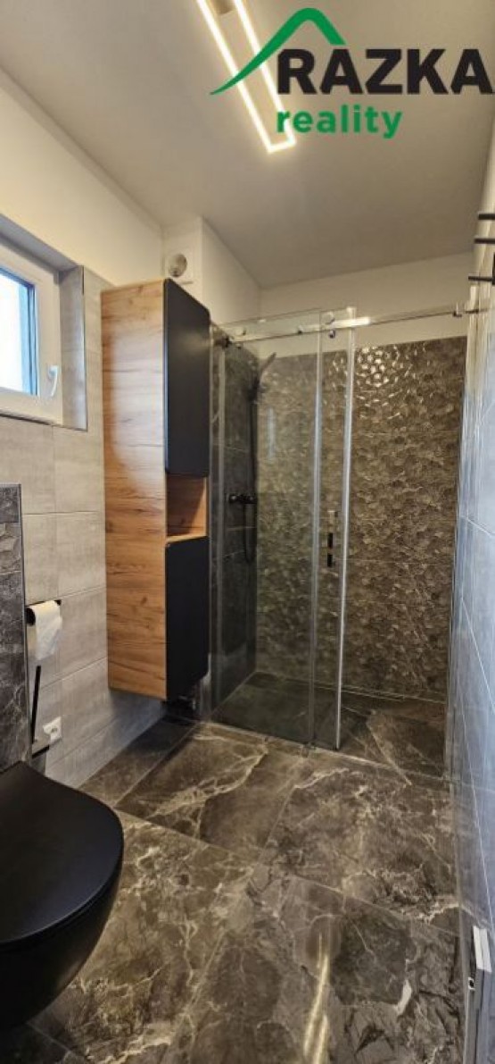 Dům je určen pro klienty, kteří mají nadstandardní nároky na bydlení. Jedná se o nízkoenergetickou novostavbu dřevostavby kolaudovanou v roce 2016. Interiér domu je velmi vkusně sladěný a svým prostorem je vhodný i pro početnější rodinu. Původní možná dispozice domu byla plánovaná jako 4+KK až 5+KK, ale vzhledem ke klientským změnám je současná dispozice 3+KK. Součástí prodej je i kuchyňská linka včetně vestavěných spotřebičů.