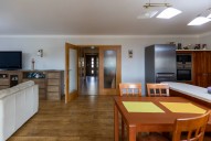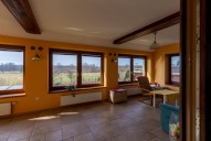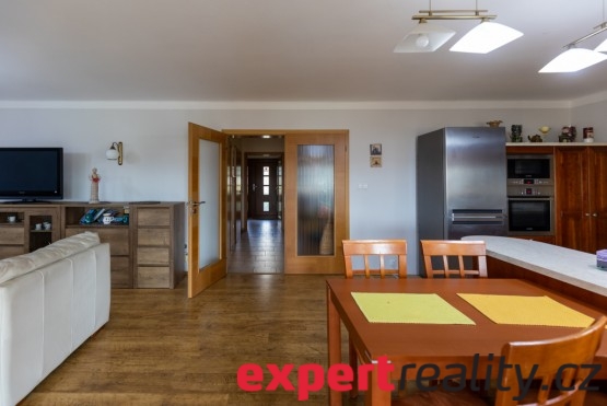 Až budete nosit občerstvení nebo kafe na zimní zahradu nebo na terasu, nemusíte chodit daleko. Východ ven je přímo z obývacího pokoje francouzskými dveřmi.