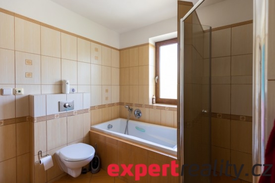 Po náročném dni si můžete dopřát relaxaci v infrasauně. Pokud ráno všichni vyrážíte ve stejný čas do práce nebo do školy, určitě oceníte 3 koupelny a celkem 5 toalet. Ve dvou koupelnách se nachází vana i sprchový kout, třetí je vybavena sprchovým koutem. Další sprchový kout se nachází v prádelně. Úklid domu vám usnadní centrální vysavač.