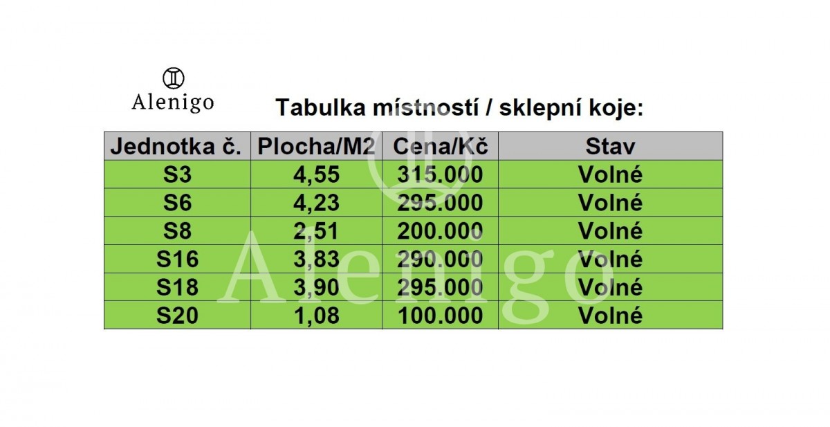 Ceník dalších jednotlivých nebytových prostor na foto v inzerátu.