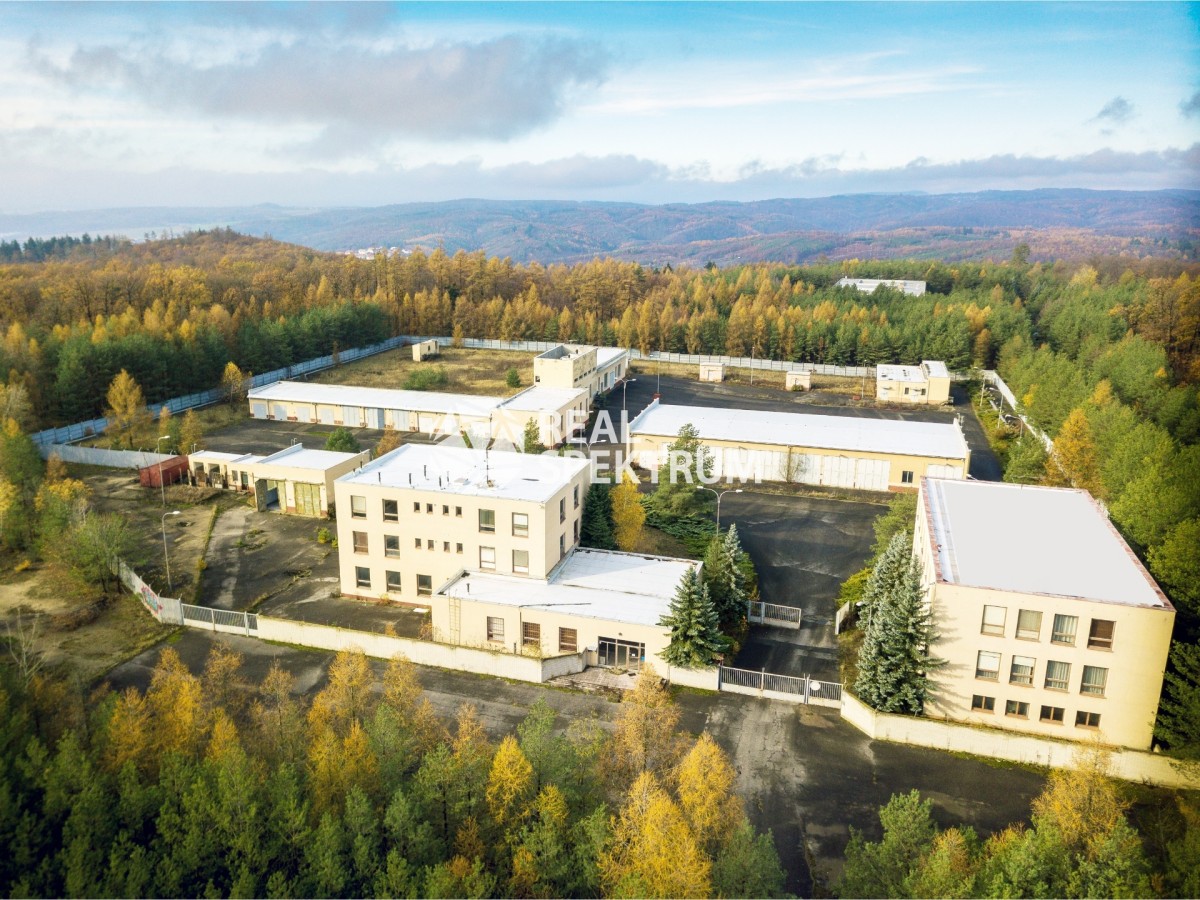 Správní budova 983 m2, ubytovna 1215 m2, garáže 808 m2, objekt bývalého psince 189 m2, trafostanice 196 m2, bunkr cca 4000 m2.