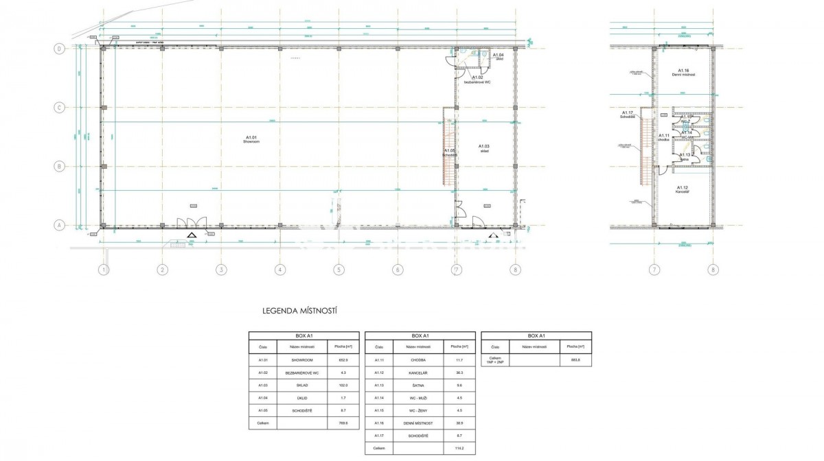 Celková užitná plocha cca 883 m2 (hala 653 m2; sklad 102 m2; kanceláře, zázemí 128 m2)