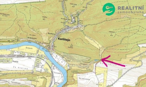 Nabízíme k prodeji unikátní pozemek v obci Karlštejn, v těsné blízkosti Karlštejnských vinných tratí. Hrad Karlštejn je v dochozí vzdálenosti do 1km zadem po turistické cestě přes louky. Jedná se o zahradu s výměrou 1508m...2, v katastrálním území Budňany. Pozemek leží na konci obce, téměř na samotě. Pozemek je snadno dostupný autem po asfaltové komunikaci, může zde parkovat i několik vozů. Na pozemku jsou k dispozici 2 studny, kopaná hloubky 8m a dále vrtaná min. 20m hluboká. Na pozemek není zavedená elektřina, ale rozvodná skříň je umístěna ihned u cesty. Zahrada není udržovaná, nacházejí se zde staré ovocné stromy a náletové dřeviny (zejména akáty). Pozemek je obklopen lesy a břidlicovými skalami, kde lze nalézt trilobity.