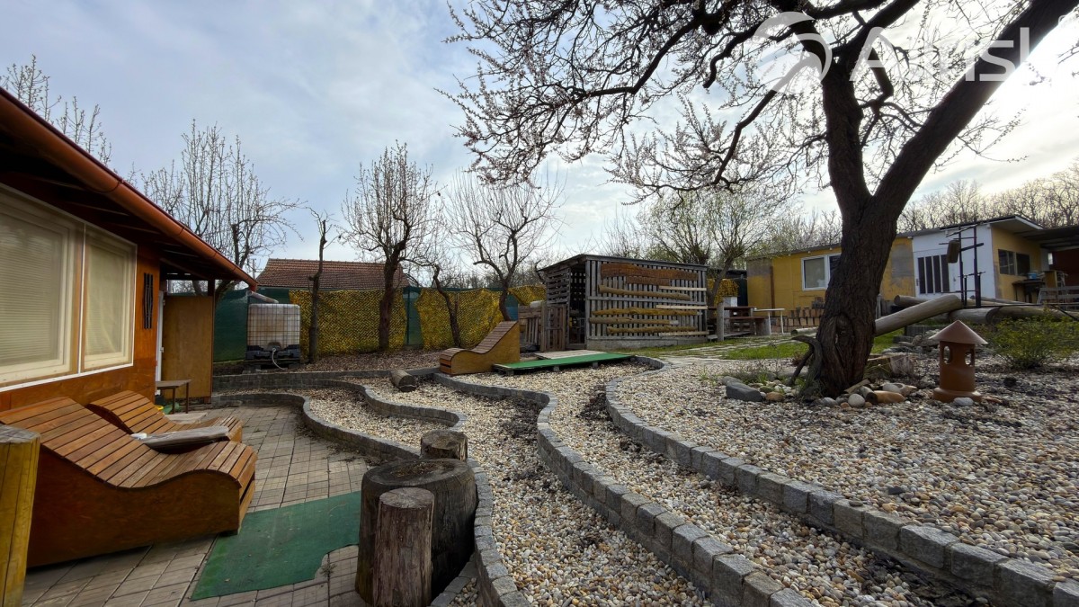 Zahradu doplňuje malý fóliovník a několik ovocných stromů, které dotvářejí příjemnou atmosféru místa a podporují jeho rekreační i užitkový charakter.