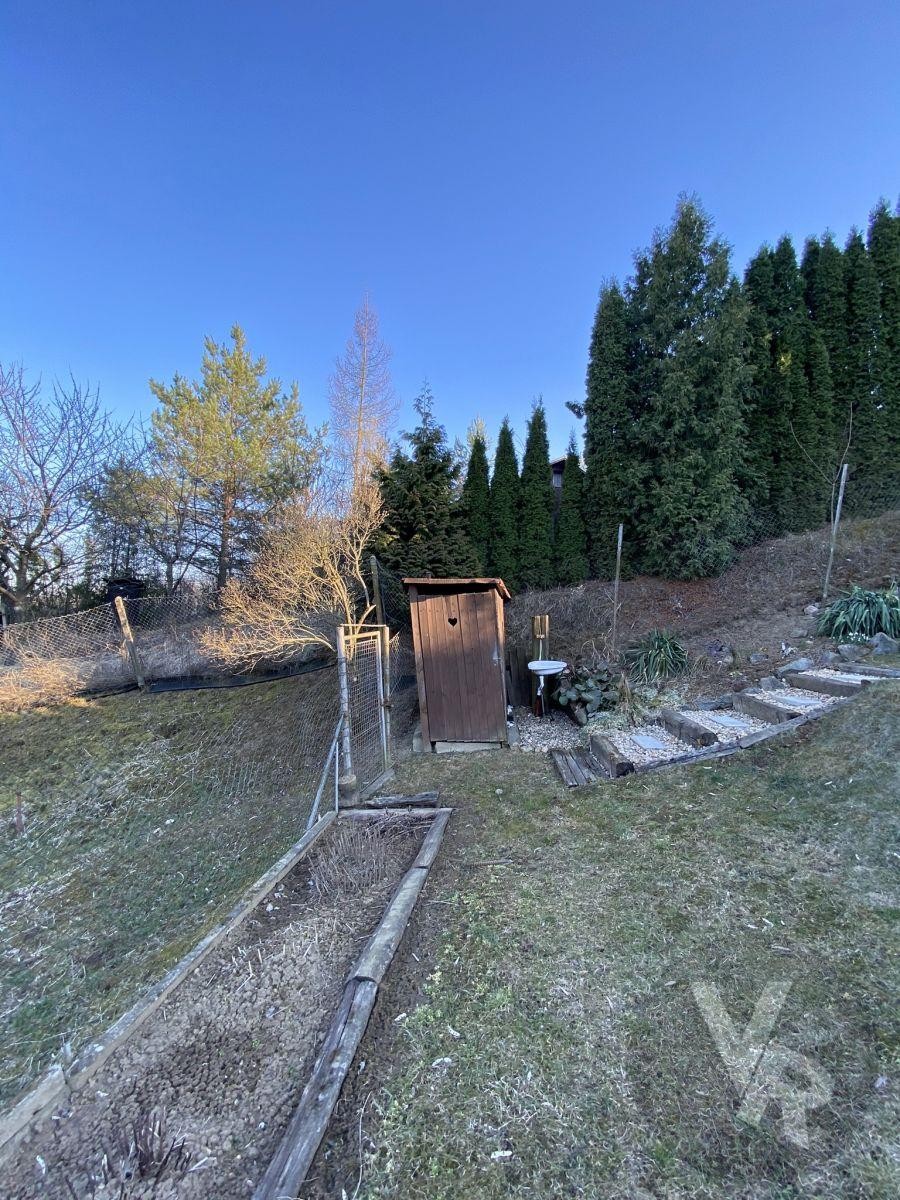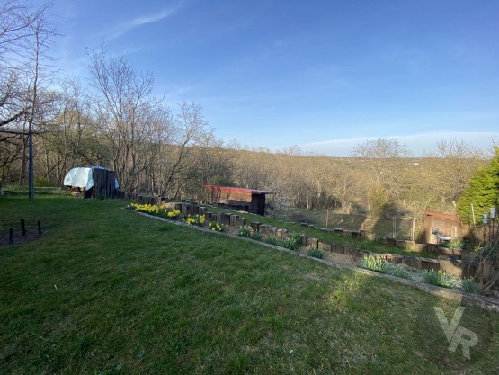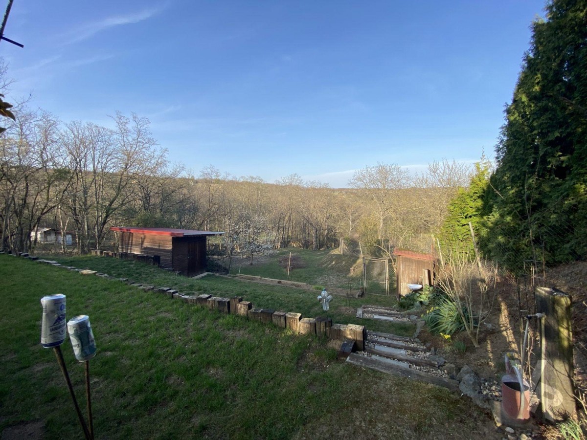 Na zahradě se nachází ovocné stromy (15 krát jabl...oň, 1 krát třešeň, 2 krát višeň, 1 krát mandloň, 3 krát meruňka, 6 krát švestka, 1 krát ořech), vše v bio kvalitě, dále jsou zde okrasné dřeviny a terasové skalky. K dispozici je vybavený karavan, zahradní domek na nářadí, suchá toaleta, dvě nádrže na užitkovou vodu, každá s obsahem 3 m3. Voda z nádrží je rozvedena po zahradě.