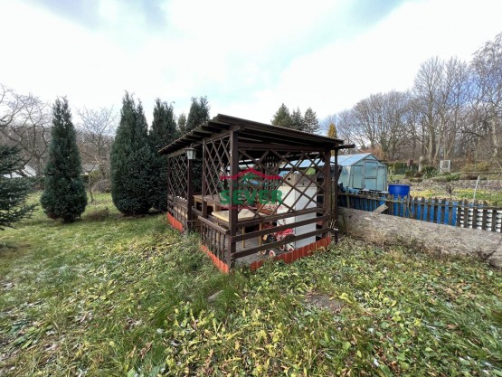Nemovitosti SEVER vám zprostředkují prodej zahrady s chatou v osobním vlastnictví, Dubí, Bystřice, okr. Teplice, ul. Údolní. Rovinatý pozemek, o výměře 413 m2, je celý oplocený. Stojí zde cihlová, patrov...á chata 17 m2 s terasou, ve které jsou dvě místnosti. V přízemí je kuchyňská linka, stůl, sprchový kout a prostor na gauč a lednici. Je zde zavedena elektřina 230 V, sezónní pitná voda, ohřev vody je řešen elektrickým bojlerem, vytápění přímotopy. V patře je spaní pro 4 osoby. Chata je zabezpečena mřížemi. Na pozemku stojí dřevěný altánek, kůlna na nářadí, bazén a v zadní části je zděné sociální zařízení WC do jímky. Zahrada se nachází v zahrádkářské kolonii v blízkosti porcelánky. Roste zde Jabloň, Vrba, Jíva a Thúje, v okolí jsou lesy. Autem do Teplic 5 minut. V případě zájmu zajistíme optimální financování našimi poradci.