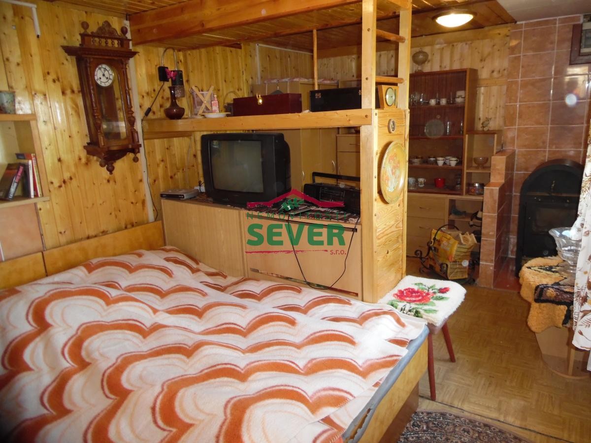 Nemovitosti SEVER vám zprostředkují prodej zahrady s chatou v osobním vlastnictví, Malé Žernoseky, okr. Litoměřice. Celý pozemek o výměře 412 m2 je oplocený. Je zde podsklepená cihlová chata ...oje + kuchyňský kout">2+kk, parkování pro jeden automobil, pergola s posezením, jezírko, venkovní sprcha, ohniště, udírna, v zadní části připravený prostor na bazén s čističkou a altánek. Na mírně svažité zahradě jsou plodící stromy, vzrostlé thuje a okrasné keře. V zateplené chatě je zavedena elektřina 230V, užitková sezónní voda, kanalizace do septiku, televizní signál anténou, vytápění je řešeno krbovými kamny na tuhá paliva, ohřev vody elektrickým bojlerem a průtokovými ohřívači. V chodbě je umyvadlo, koupelna s sociální zařízení WC vedle ložnice. Je zde sprchový kout, samostatné splachovací sociální zařízení WC s odvětrávacím oknem. V kuchyni je linka, elektrický dvou plotýnkový vařič, lednice, mikrovlnná trouba a jídelní kout. Celý vnitřek chaty je vkusně obložený dřevem. Cena je včetně veškerého zařízení. Chata se nachází na okraji obce v zahrádkářské kolonii s moc hezkým výhledem do okolní krajiny s řekou Labe. Autem do Litoměřic 12 km, do Lovosic 3 km. V případě zájmu zajistíme optimální financování našimi poradci.