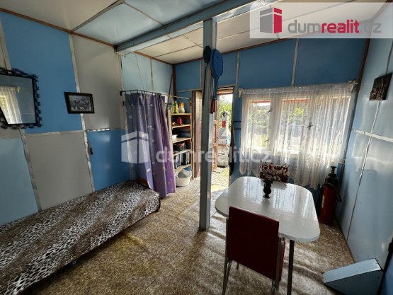 Elektřina na pozemku zatím není, ale je zde možnost připojení. Chata má jednu obytnou místnost a půdu, kterou dříve využívali jako sklad sena.