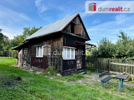 Tato dřevěná chatka se nachází na rovinatém a osobně vlastněném pozemku o rozloze 413 m².