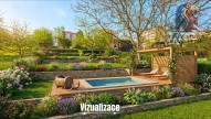 Zahrada je orientovaná na jih, krásně na ni svítí sluníčko. Rostou na ní jabloně a vlašské ořechy. Je svažitá a jsou na ni vytvořeny kaskády jako vodorovné plochy. Je obdélníkového tvaru o stranách cca 15m x 27, 5m.