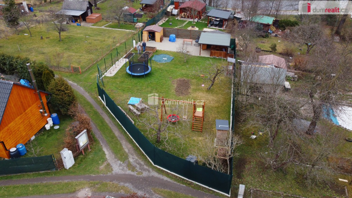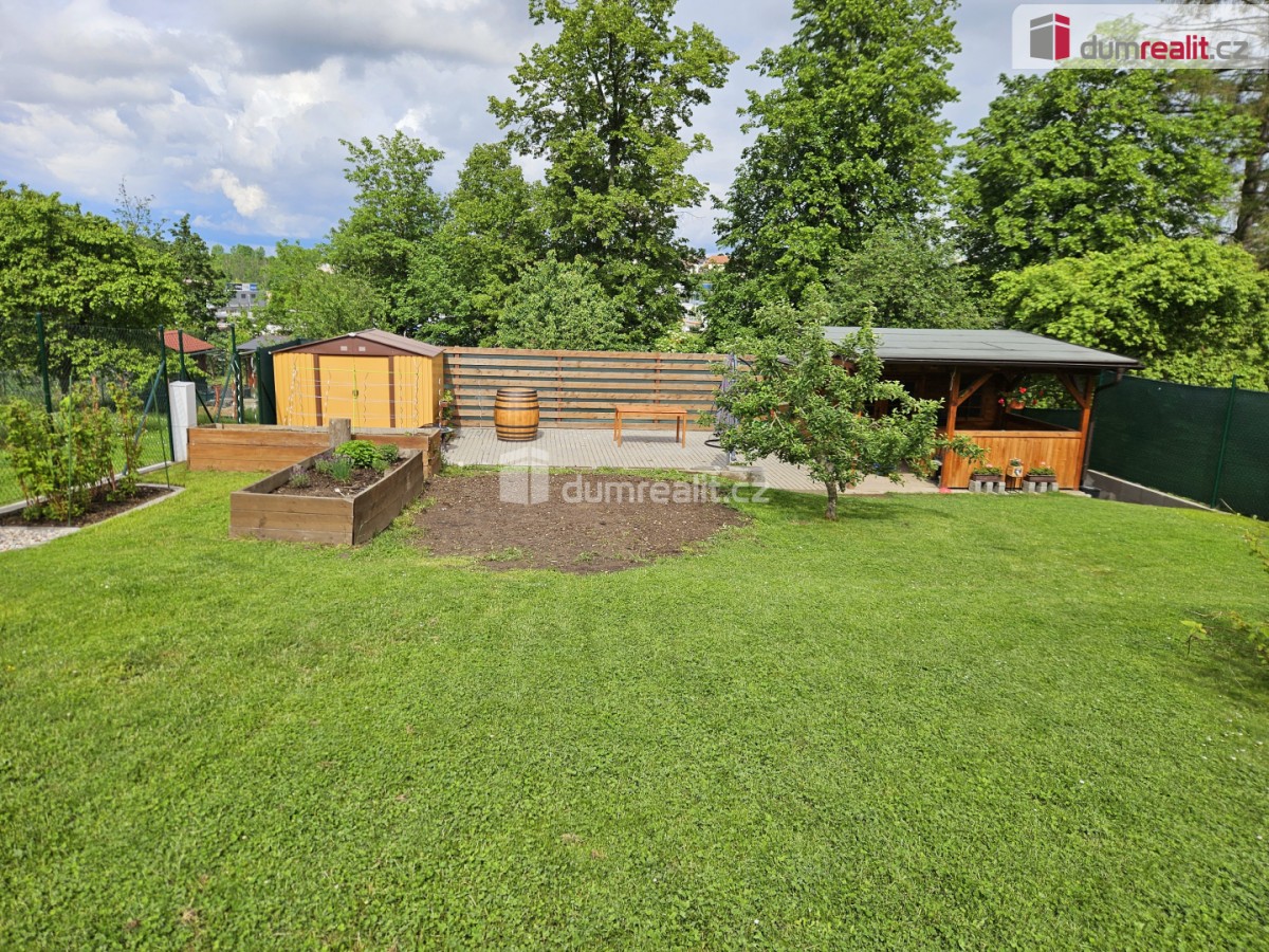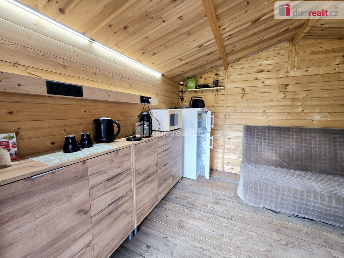 Součástí zahrady je dřevěný zahradní domek s pergolou, který je ideálním místem pro posezení s rodinou či přáteli. Do domku je nově přivedena elektřina. Je zde provizorní kuchyňská linka a dostatek prostoru pro rozkládací gauč. Díky tomu zde můžete trávit celé dny. Jako úložný prostor poslouží plechový domek na nářadí. Celá zahrada je obehnaná nově postaveným vysokým plotem, který poskytuje dostatek soukromí.