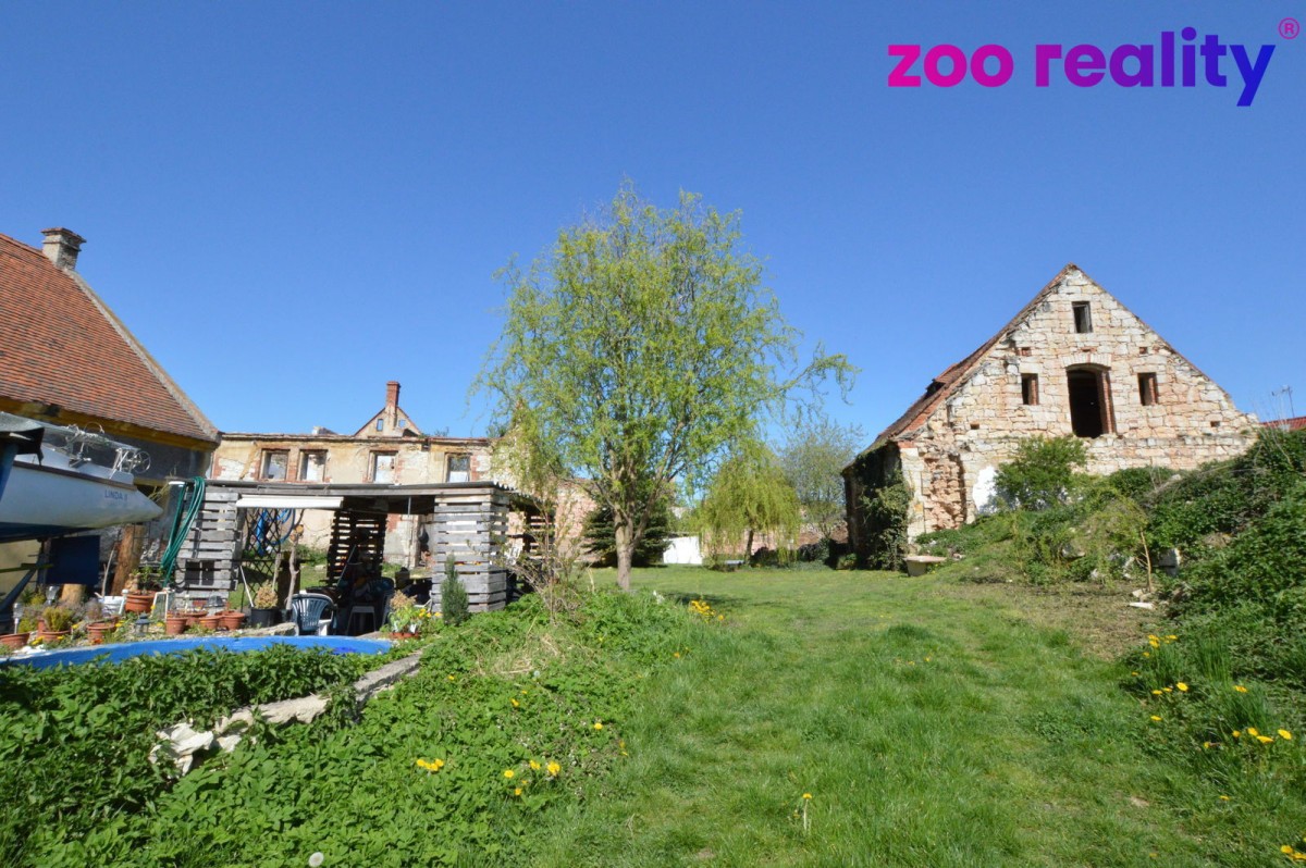 Předmětem prodeje jsou dva u sebe stojící domy s jedním číslem popisné, z jedné části obývané. Celková plocha pozemku je 2058 m2, zastavěná plocha 489 m2. Celkový stav je před rekonstrukcí. Obě stav...by částečně podsklepené. Na pozemku se nachází kopaná studna, torzo zemědělské stavby, uprostřed dvora pergola s menším bazénem. Vytápění domu je řešeno plynovým kotlem na propanbutanovou lahev nebo kotlem na tuhá paliva, pitná voda zajištěna z řádu, kanalizace žumpou. Dům disponuje kuchyní, průchozím obývacím pokojem, ložnicí a dětským pokojem, přes chodbu koupelna. Z chodby vstup na půdu a do sklepa. Velikost pozemku vybízí k realizaci podnikání či koníčků různého druhu. Hned před domem je oplocené dětské hřiště. Občanská vybavenost v 10 km vzdáleném Žatci. Doporučujeme osobní prohlídku. Pro více informací volejte makléři.