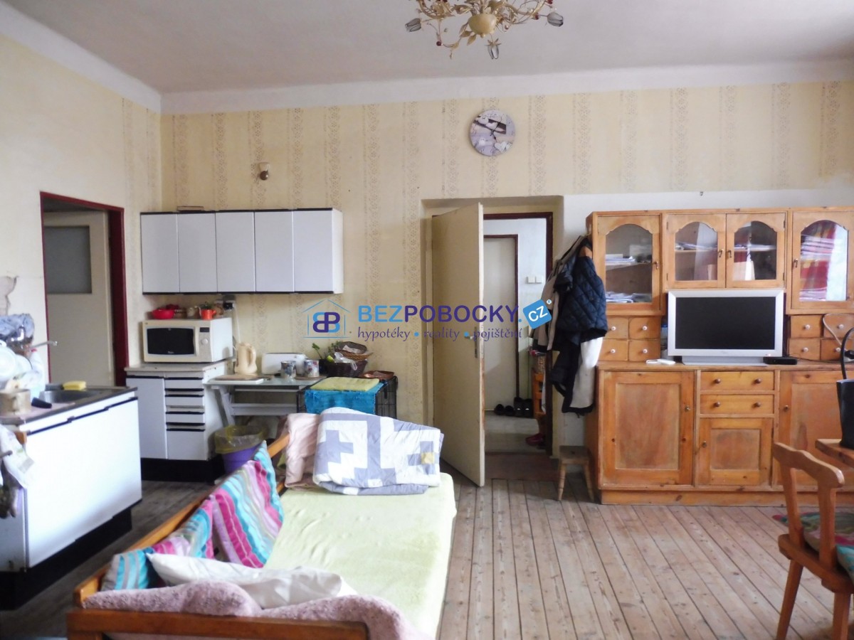 Dům je uprostřed rozdělen velkou chodbou. Vlevo je vstup do bytu, kde je prostorná kuchyň s obývací částí a navazují další dva pokoje. Dále je zde koupelna a sociální zařízení WC. Chodbou je vstup do sociálních zařízení, která zde byla součástí hospody a která jsou funkční. Vpravo je pak vstup do bývalé hospody, kuchyně, kde jsou dva sklady, dále vstup na půdu, která vybízí k vybudování podkrovních pokojů. Celý dům je podsklepený, kde jsou klenuté stropy. Dům je průchozí na slunnou zahradu, kde je i parkovací stání a stodola. Majitel v loňském roce provedl opravu vodovodu v obytné části a opravu části střechy. Při rychlém jednání je možná dohoda ceny.